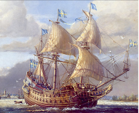 The royal ship Vasa sank on its maiden voyage in 1628. She was 69 meters long, 11.7 meters wide and 4.8 meters deep. Her displacement was 1210 tons. She had 3 masts and ten sails. Vasa was equipped with 48 × 24 pound cannons, 8 × 3 pound cannons, 2 × 1 pound cannons, 6 storm pieces. The crew consisted of 145 sailors and 300 soldiers.